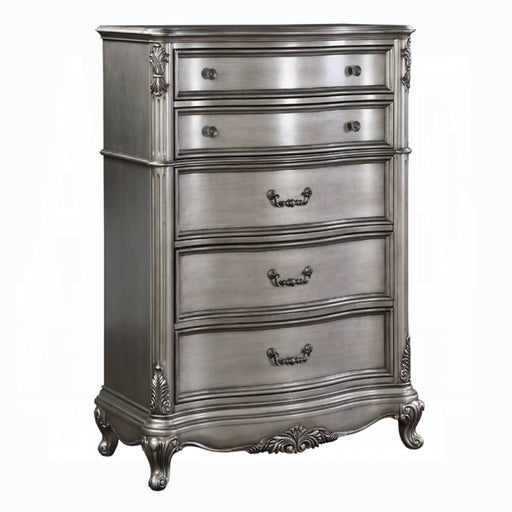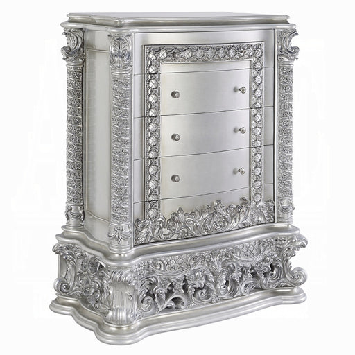 ACME Versailles Chest, Antique Platinum, 47" x 22" x 55"H, 209Lbs. Materials: Wood, Poly Resin, Wood Veneer