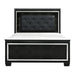 - Tufted button Bi-cast Vinyl (faux leather) upholstered headboard with LED lighting and beveled mirror frame
