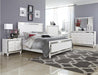 Alonza Collection by Homelegance Furniture White finish Embossed alligator board Inlay mirrors Back-lit LED headboard Turned feet This bed require...