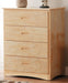 Bartly Collection by Homelegance Natural finish Made of Pine veneers and wood 4 drawer with roller side glides Cutout handles No assembly required