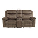 View full detailsAram Collection by Homelegance Furniture Brown fabric covering Manual motion mechanisms with pull of a side-mounted tab With center console, recep...