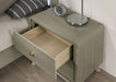 Click to expand Tap to zoom Rainier Nightstand by FOA East Contact us to place an order. Contemporary Gray Rubberwood, Paper Veneer, Engineered Wood Center Glide English Dovetail Drawers